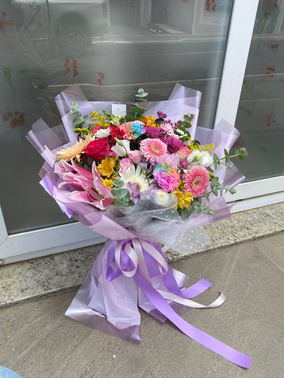 Cada buquê é cuidadosamente montado por nossos floristas, que selecionam as flores mais frescas e bonitas para compor a obra de arte. A embalagem é feita com papel colorido, que varia conforme a combinação de cores das flores, trazendo ainda mais charme e elegância ao presente.